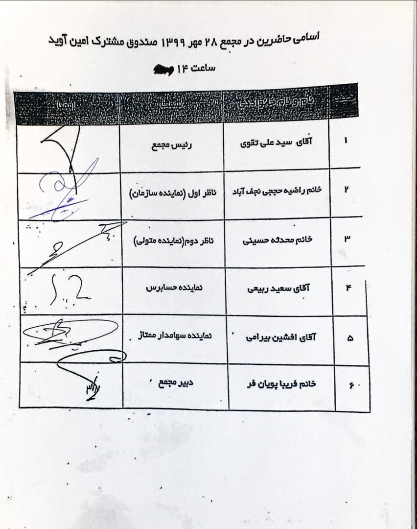 اسامی حاضرین مجمع ۱۳ آبان صندوق سرمایه گذاری مشترک امین آوید