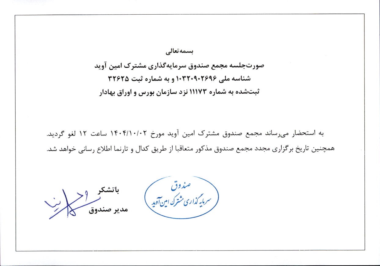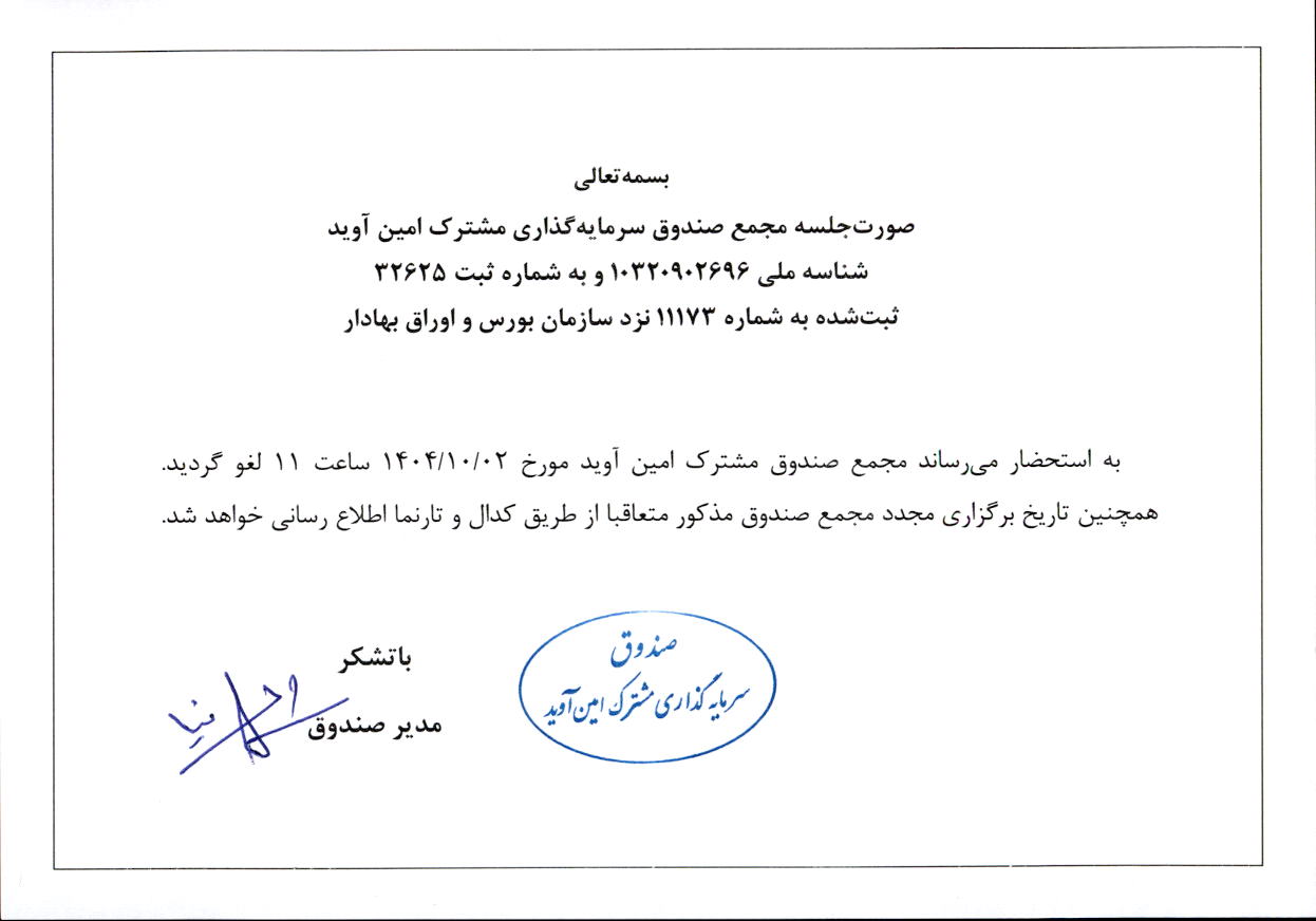 مجمع صندوق مشترک امین آوید مورخ ۲۶ مهر برگزار گردید.